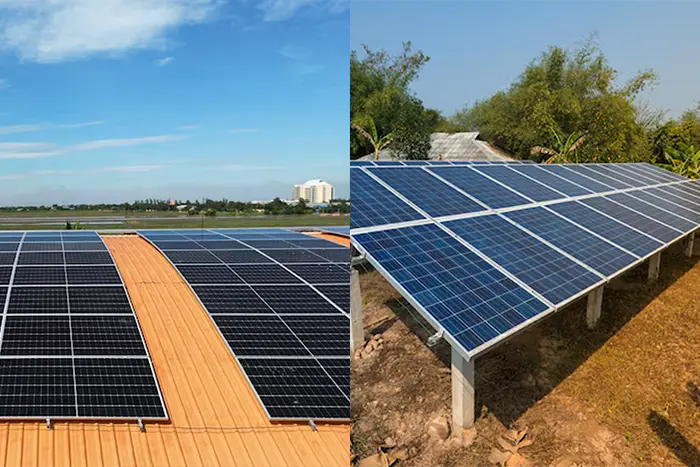 For farms and large businesses, agri-based solar solutions often use ground-mounted panels for dual benefits: energy production and agricultural productivity.